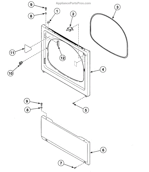 This door catch assembly secures the door when closed so the machine can run. A worn or broken catch can keep the door from latching firmly, causing start issues or interruptions during a cycle.