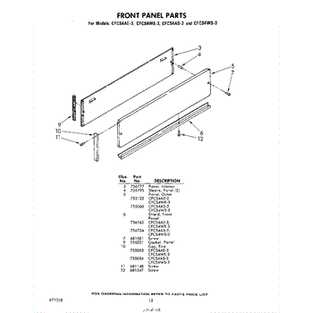 Parts for Whirlpool CFCS4WE3: 12 - Front Panel Parts