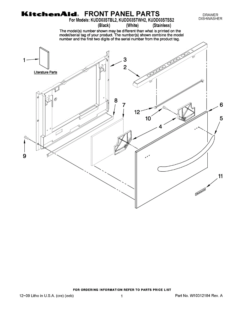 Parts for Kitchenaid KUDD03STBL2: 01 - Front Panel Parts