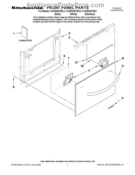 Parts for Kitchenaid KUDD03STSS2: 01 - Front Panel Parts