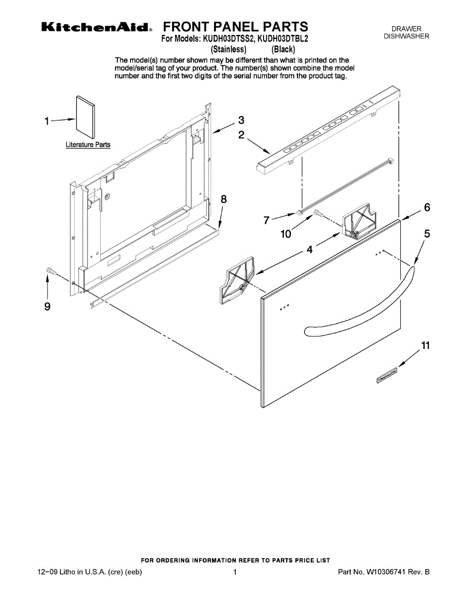Intermediate panel for dishwashers. Mounts between the door and tub to cover internal components. Replace if cracked, discolored, or damaged.