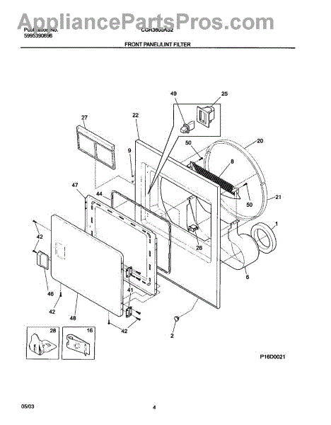 The Dryer Seal is an OEM replacment part for Frigidaire dryers. It is located at the doorway opening where the drum rotates and helps prevent lint, moisture, and heat from escaping. The seal is a crucial component that ensures efficient drying and heat retention within the dryer drum.