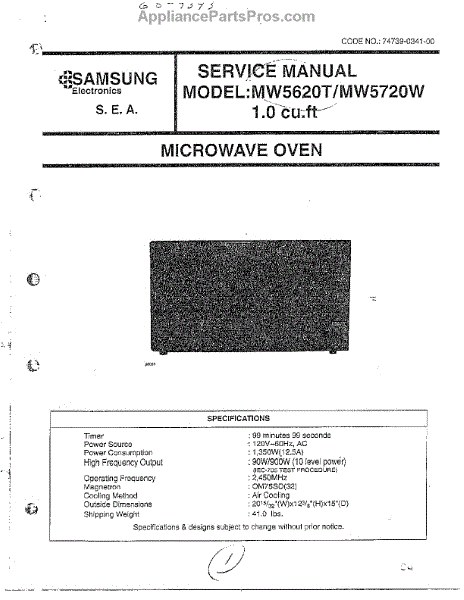 Parts for Samsung MW5620T/XAA: Front Page Parts