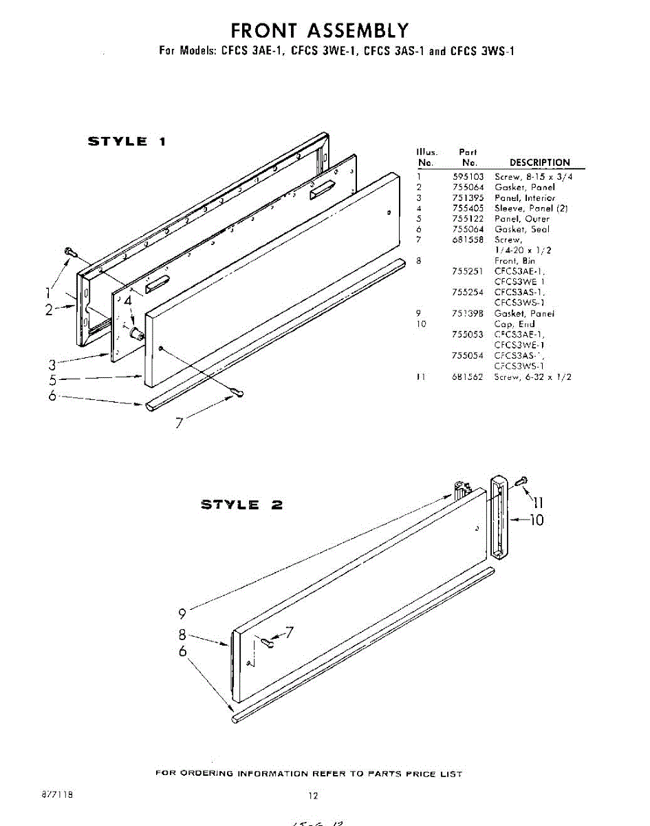 Parts for Whirlpool CFCS3AE1: 12 - Front Parts