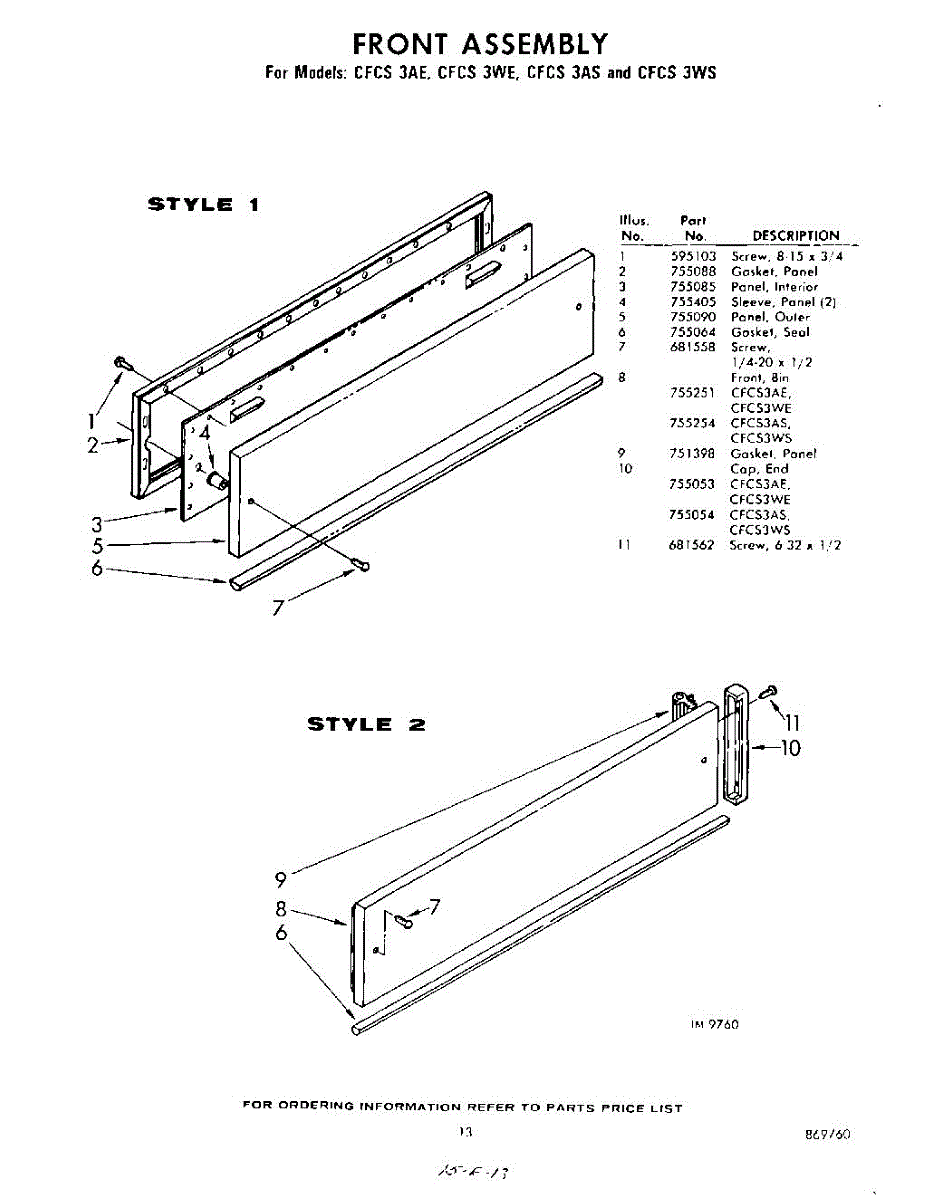 Parts for Whirlpool CFCS3WS: 13 - Front Parts