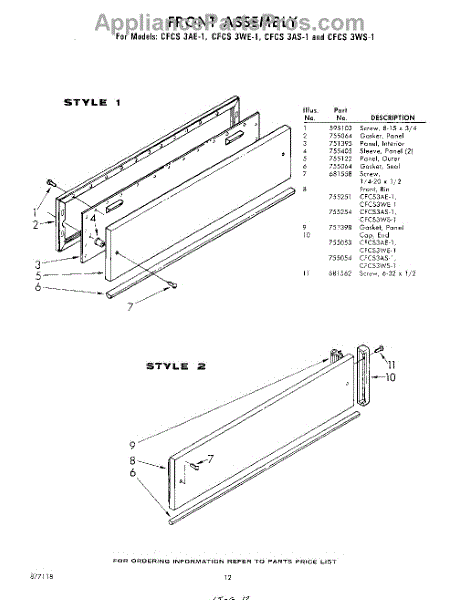 Parts for Whirlpool CFCS3WS1: 12 - Front Parts