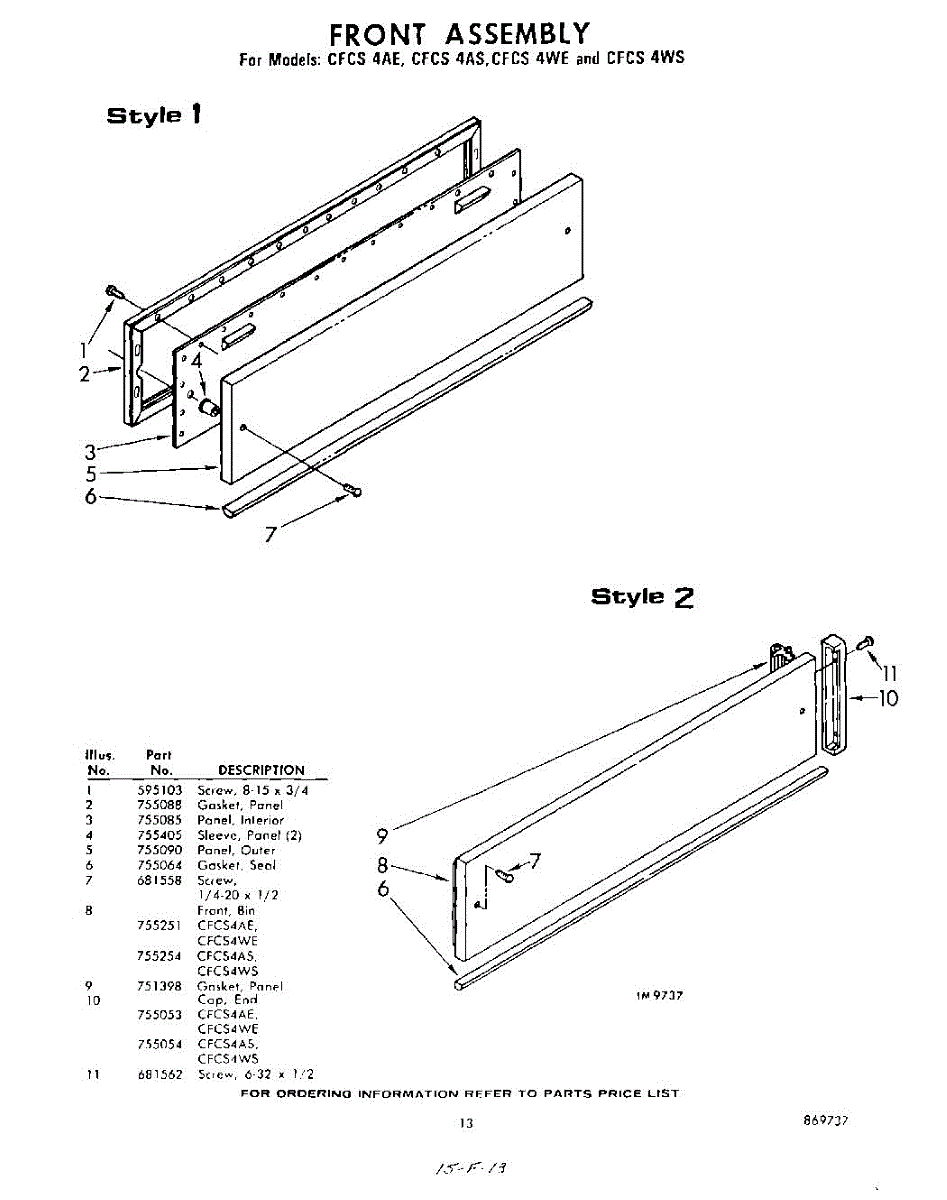 Parts for Whirlpool CFCS4AE: 13 - Front Parts