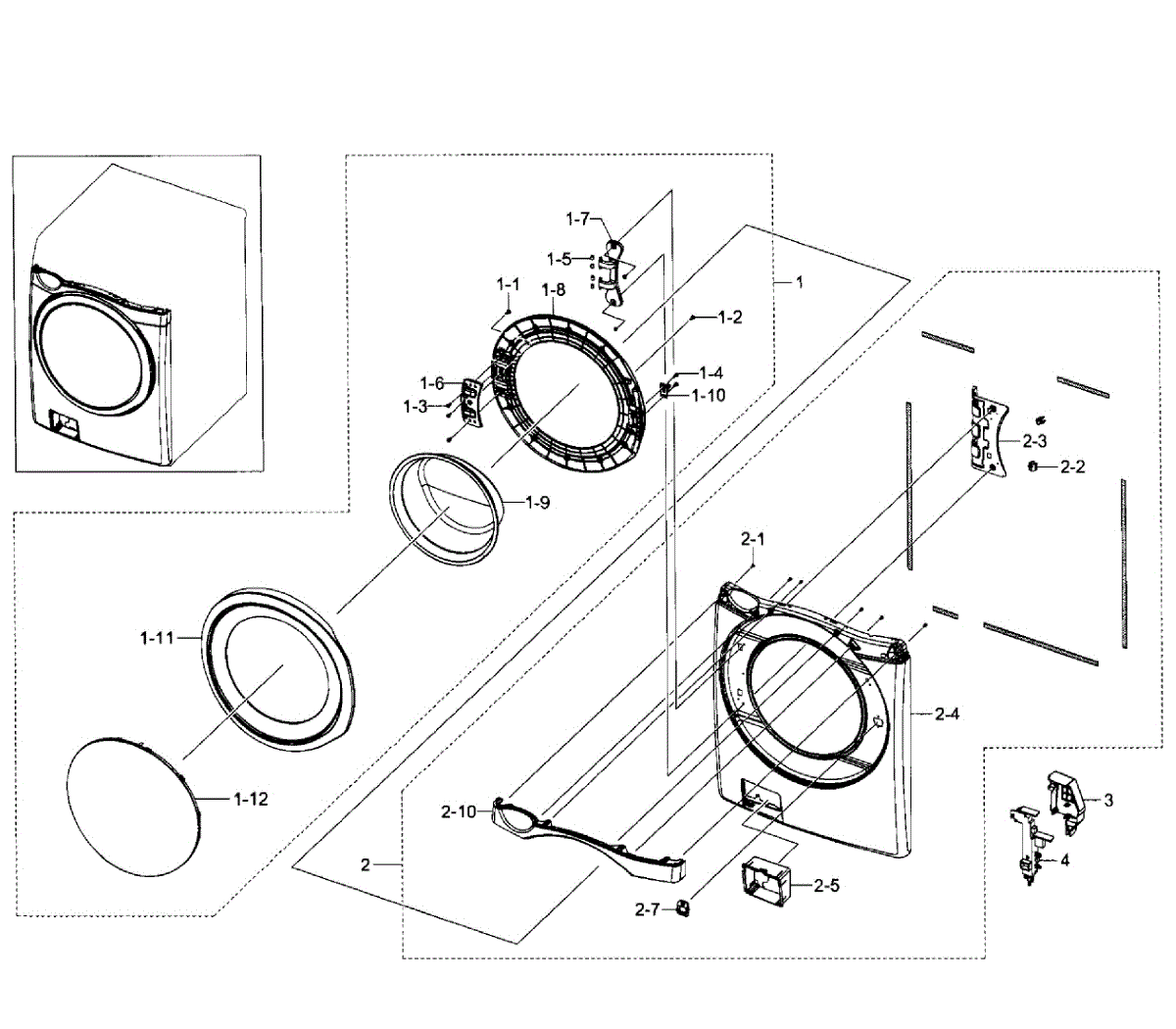 Secures the glass panel in your washer's front door assembly. Replace if cracked, broken, or damaged from impact to restore proper door closure and fit.