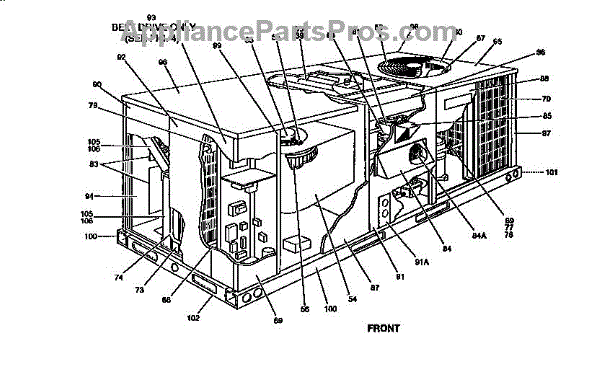 Parts for York D6CG036N07946A: Front View Single Package Unit Parts