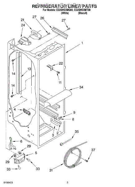 Parts for Whirlpool ED2SHEXMT00: 02 - \Fs36 Refrigerator Liner Parts