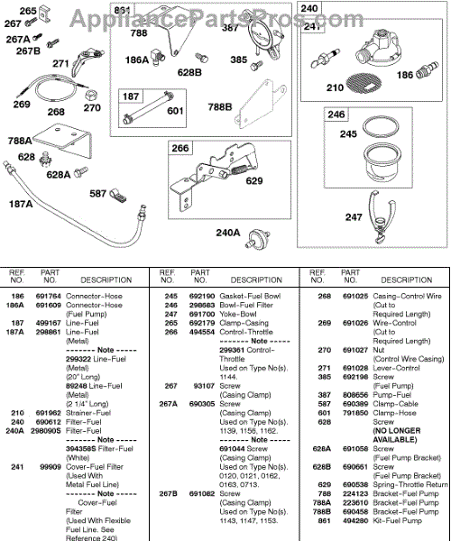 Parts for Briggs & Stratton 243431-0655-99: Fuel Filter, Fuel Pump, Fuel Line Parts