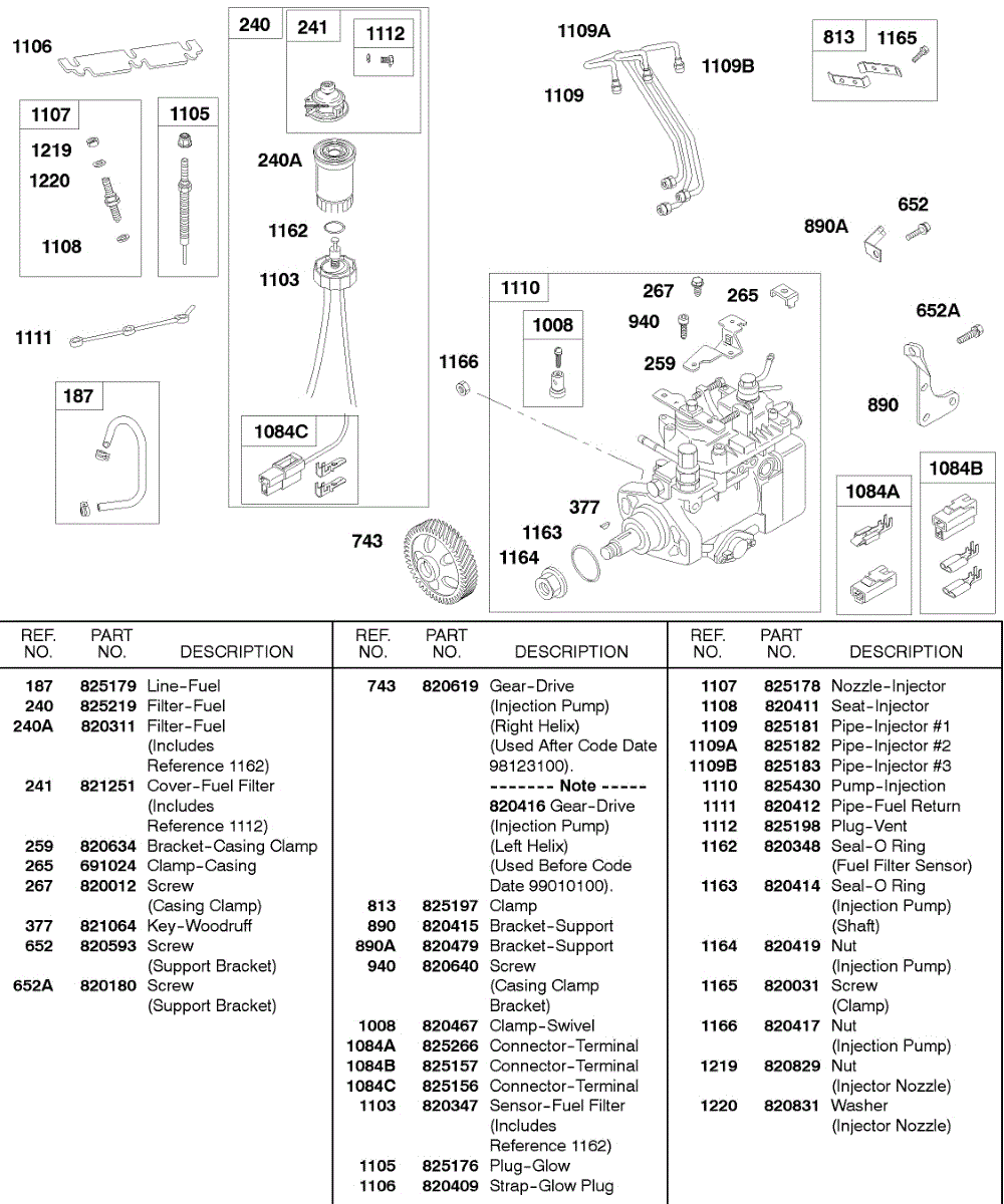 Parts for Briggs & Stratton 432447-0376-E2: Fuel Filter, Injection Pump Parts