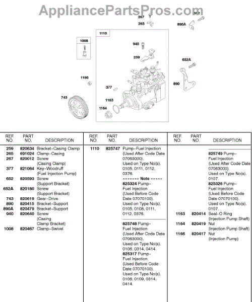 Parts for Briggs & Stratton 522447-0111-E2: Fuel Injection Pump Parts