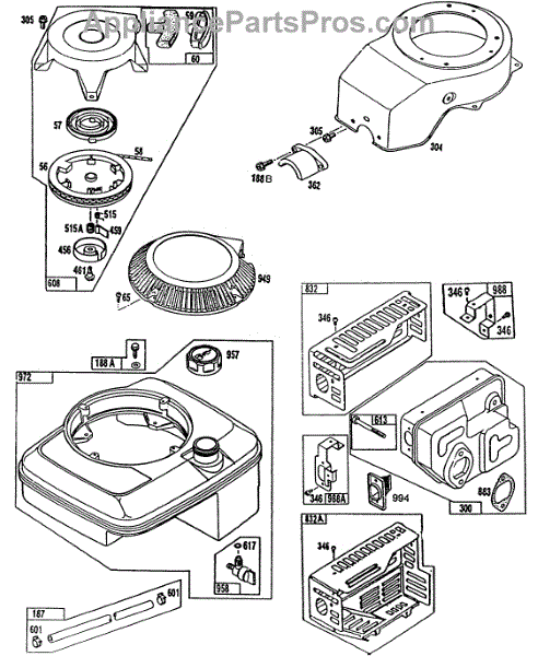 Parts for Briggs & Stratton 096722-3206-01: Fuel, Muffler, Rewind Parts