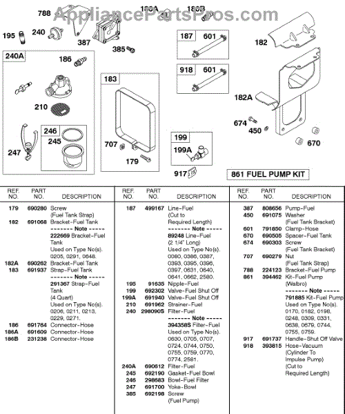 Parts for Briggs & Stratton 326431-2522-02: Fuel Pump, Fuel Filter Parts