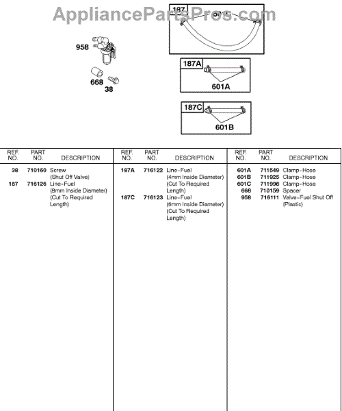 Parts for Briggs & Stratton 187437-0113-E1: Fuel Supply Parts