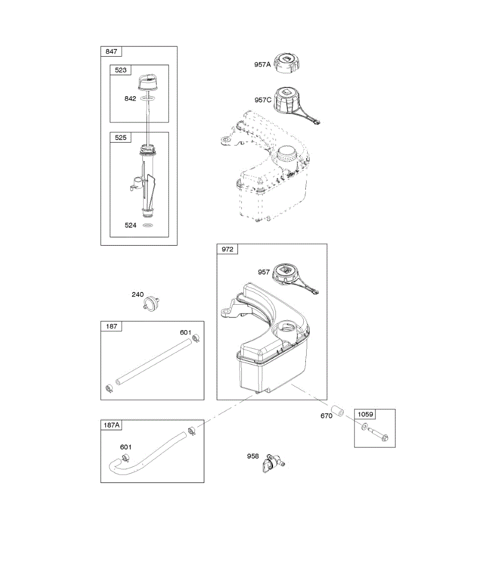 Parts for Briggs & Stratton 14B907-0110-B1: Fuel Supply, Lubrication Parts