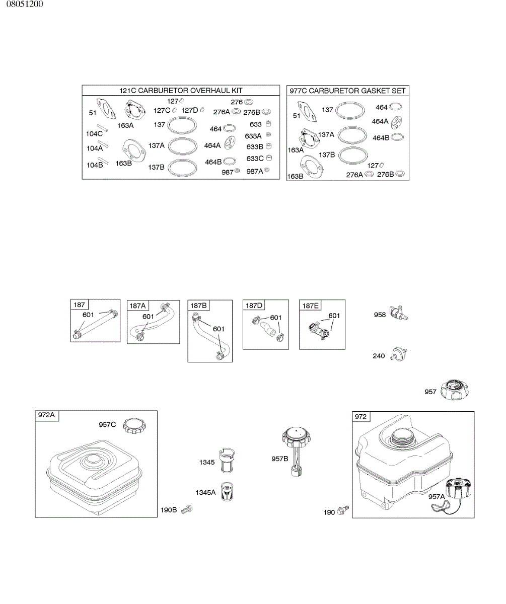 Complete carburetor overhaul kit for lawn and garden engines. Includes gaskets, seals, and components to rebuild a worn or damaged carburetor assembly.