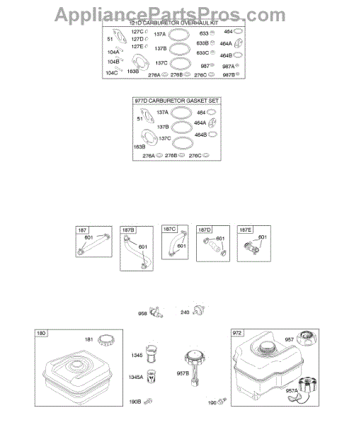 This replacement part is a carburetor overhaul kit. This kit includes multiple parts that are needed to rebuild or repair a damaged carburetor.Be sure to diagnose the issue before purchasing this kit to ensure that the needed parts are included. A damaged carburetor may cause hard starting or black smoke exhaust during use. Wear work gloves when working with the carburetor. The engine should be powered down and cooled off before starting this job.This is a genuine OEM replacement part manufactured by Midwest Engine. This part is sold individually.