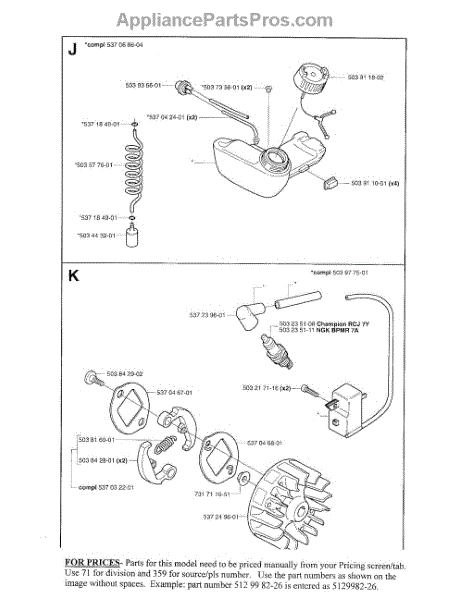 Parts for Husqvarna 123L: Fuel Sys, Ignition Assembly Parts