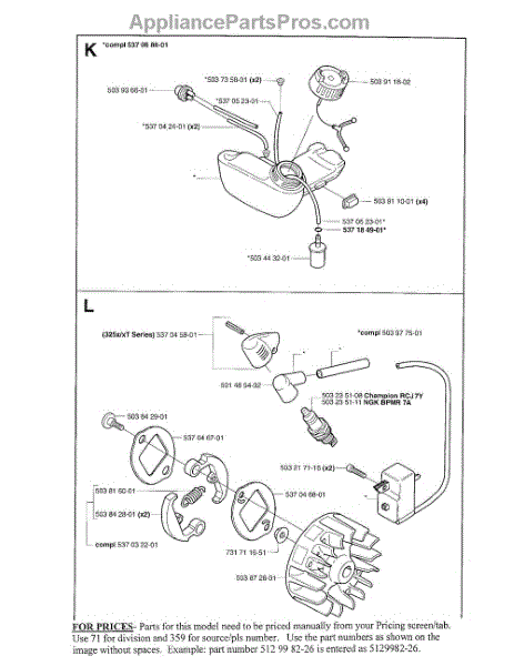 Parts for Husqvarna 325RJX: Fuel Sys,Ignition, Clutch Parts