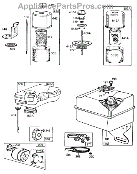Parts for Briggs & Stratton 081252-0104-01: Fuel Tank, Air Cleaners Parts