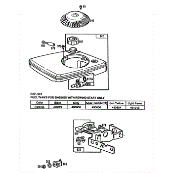 Parts for Briggs & Stratton 110707-3036-01: Fuel Tank Assy, Control Brkt Parts