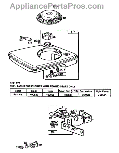 Parts for Briggs & Stratton 110708-0301-01: Fuel Tank Assy, Control Brkt Parts