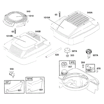 Parts for Briggs & Stratton 121802-0413-01: Fuel Tank Assy,Covers,Hoses Parts
