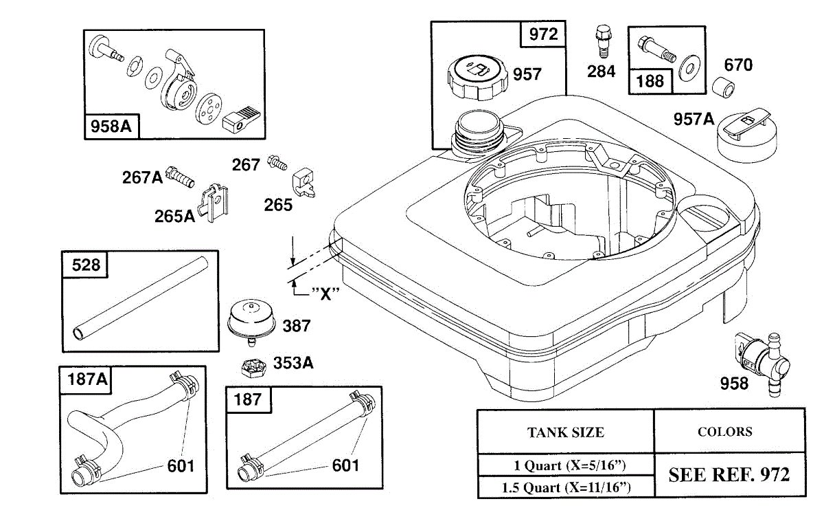Parts for Briggs & Stratton 122702-4007-01: Fuel Tank Assy, Hoses Parts