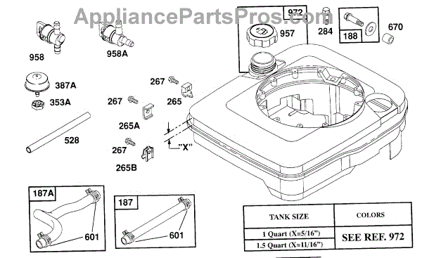 Parts for Briggs & Stratton 123702-3106-01: Fuel Tank Assy, Hoses Parts