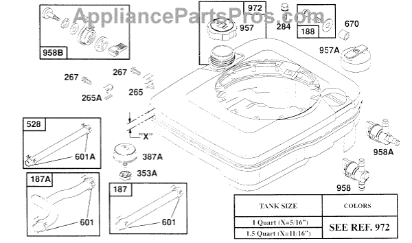 Parts for Briggs & Stratton 124707-0133-01: Fuel Tank Assy, Hoses Parts