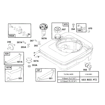 Parts for Briggs & Stratton 126782-0120-01: Fuel Tank Assy, Hoses Parts