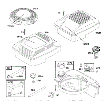 Parts for Briggs & Stratton 126802-0510-99: Fuel Tank Assy,Covers, Hoses Parts