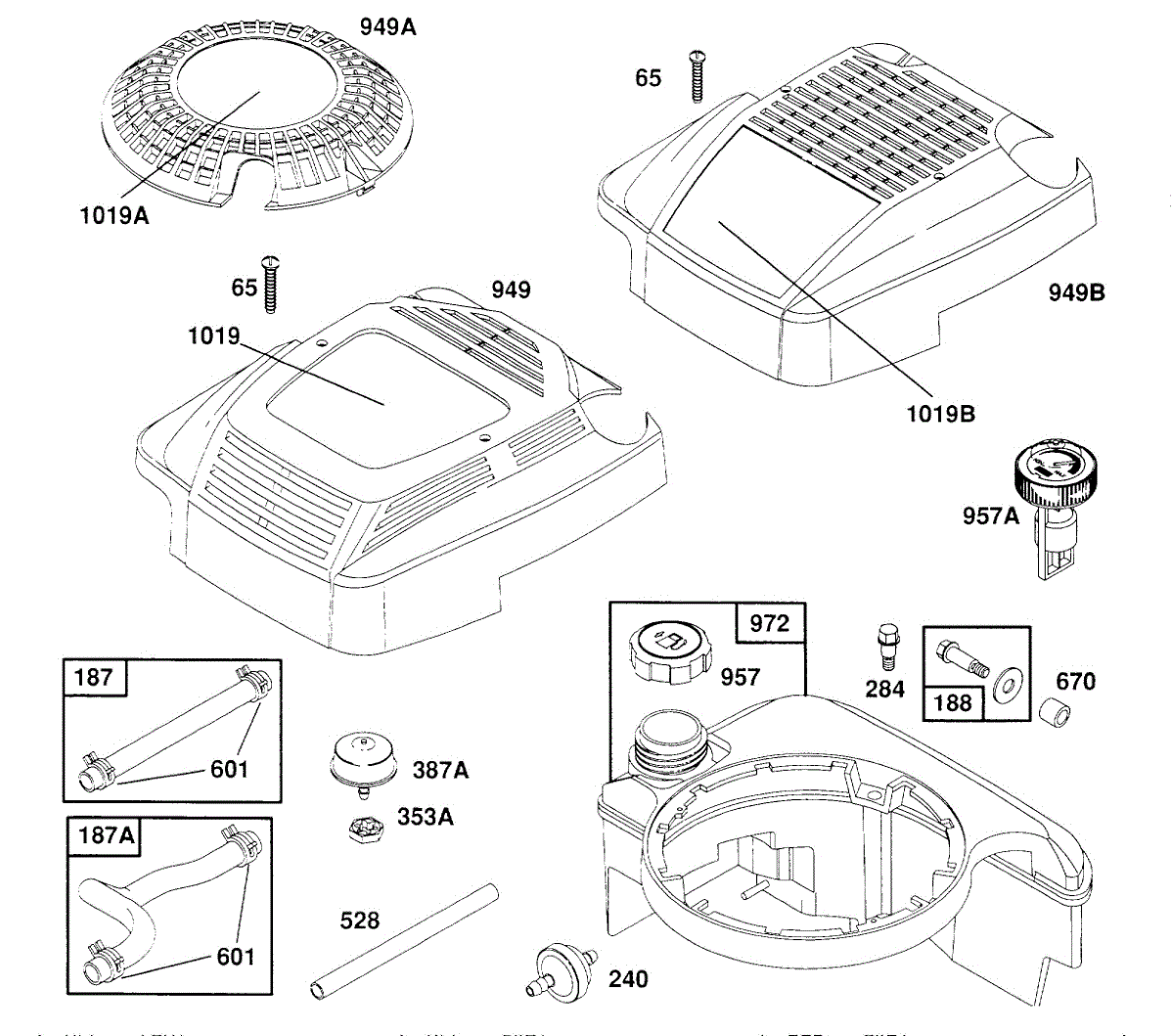 Parts for Briggs & Stratton 126802-3226-01: Fuel Tank Assy,Covers, Hoses Parts