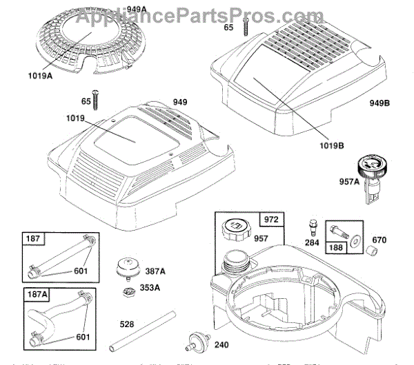 Parts for Briggs & Stratton 126802-3423-01: Fuel Tank Assy,Covers, Hoses Parts