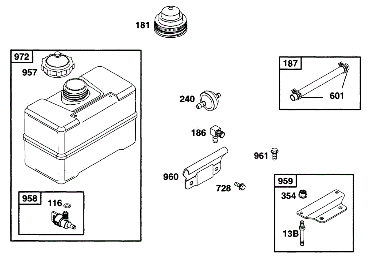 Parts for Briggs & Stratton 170452-6049-01: Fuel Tank Assy Parts