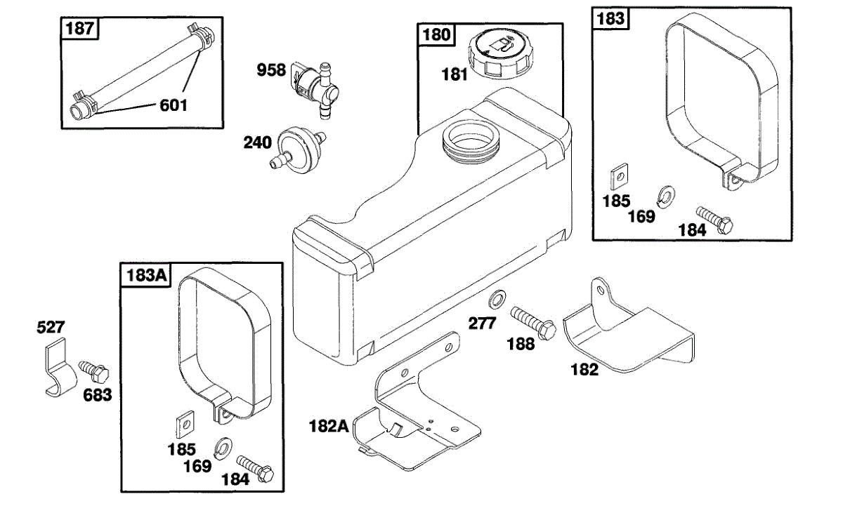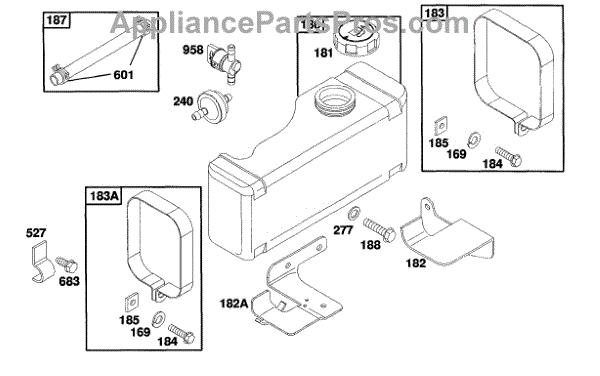Parts for Briggs & Stratton 258707-0102-01: Fuel Tank Assy Parts