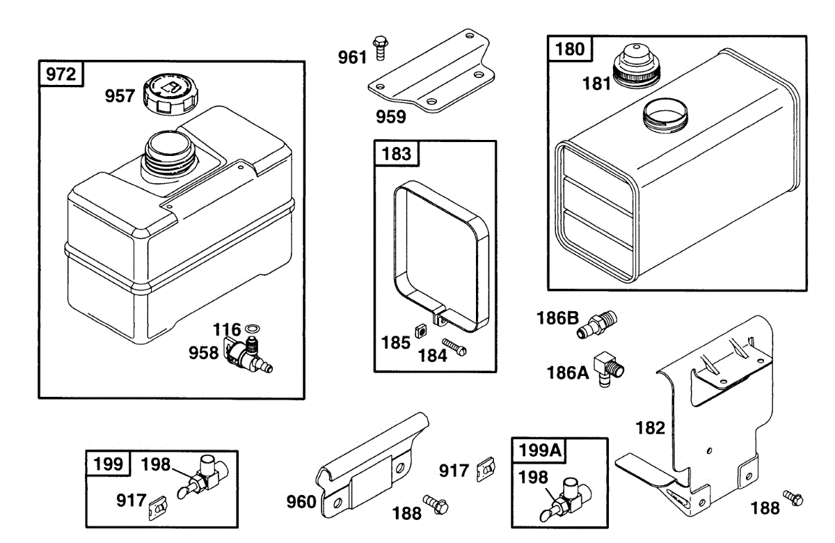 Parts for Briggs & Stratton 252412-0200-99: Fuel Tank Assys Parts