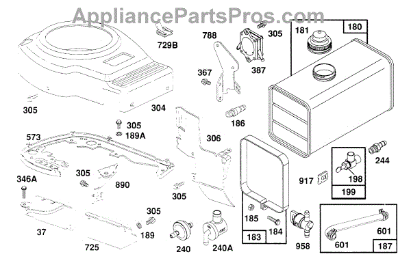 Parts for Briggs & Stratton 261772-0116-99: Fuel Tank,Blower Hsg,Guards Parts