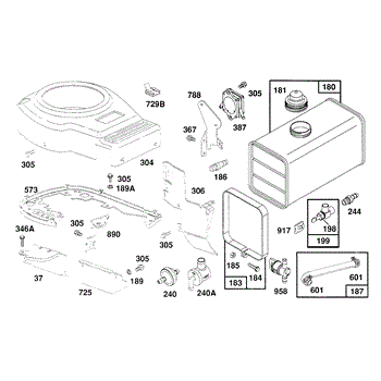 Parts for Briggs & Stratton 261777-0117-99: Fuel Tank,Blower Hsg,Guards Parts