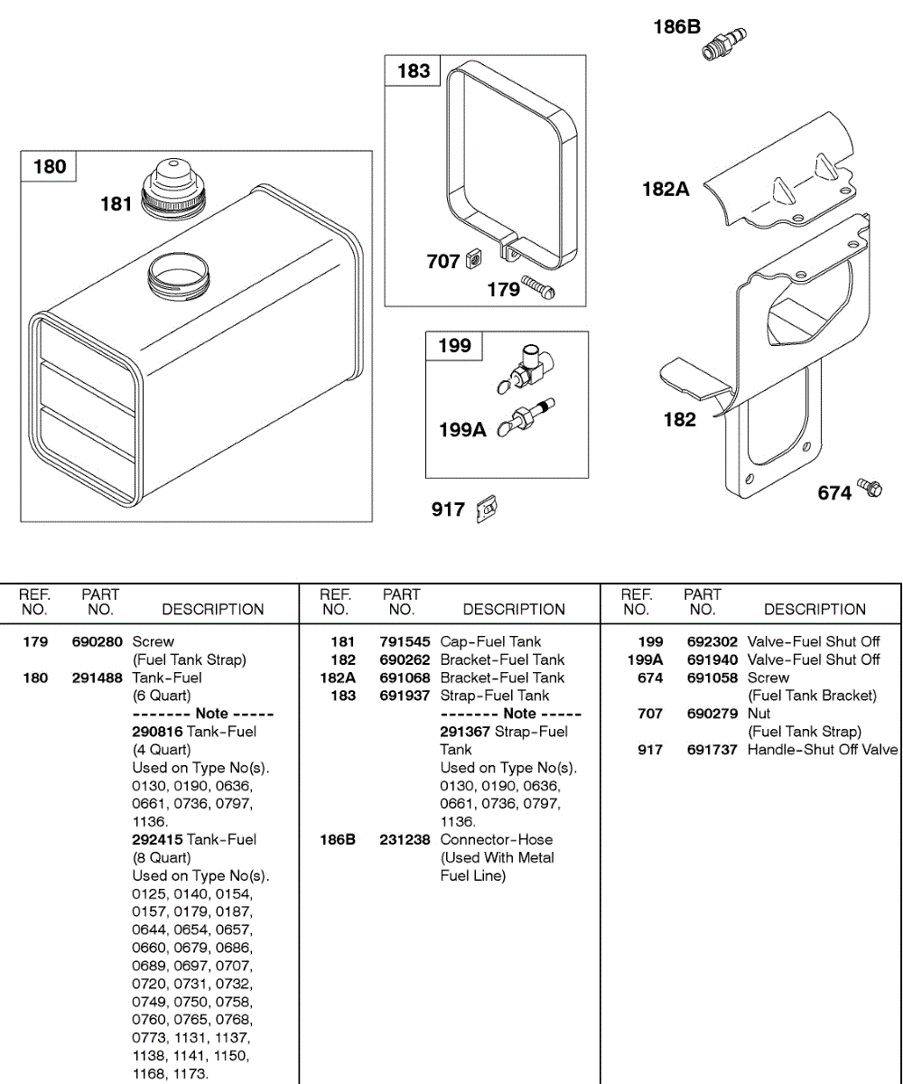 Parts for Briggs & Stratton 243431-0777-99: Fuel Tank, Brackets Parts