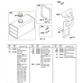 Parts for Briggs & Stratton 243432-0801-99: Fuel Tank, Brackets Parts