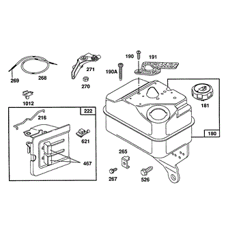 Parts for Briggs & Stratton 080202-8920-01: Fuel Tank, Control Bracket Parts