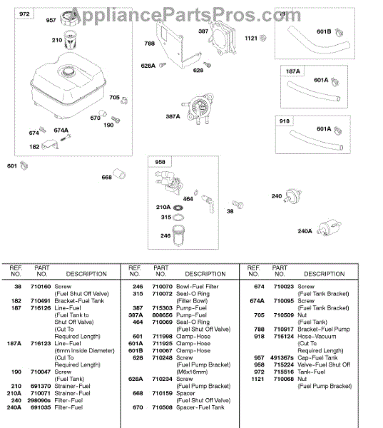 Parts for Briggs & Stratton 245437-0074-01: Fuel Tank, Fuel Pump, Fuel Hoses Parts