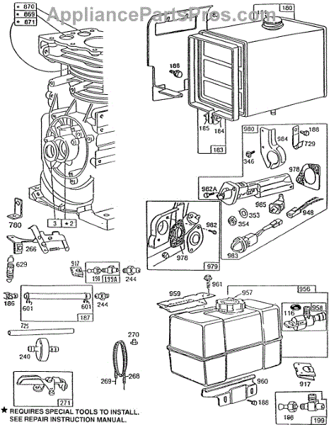 Parts for Briggs & Stratton 190432-5163-01: Fuel Tank Groups, Primer Parts