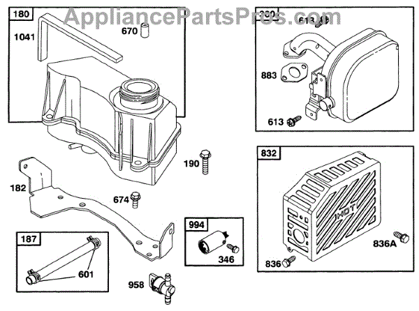 Replacement mounting screw for small engines. Secures engine components and covers. Order a new screw if yours is stripped, missing, or damaged.