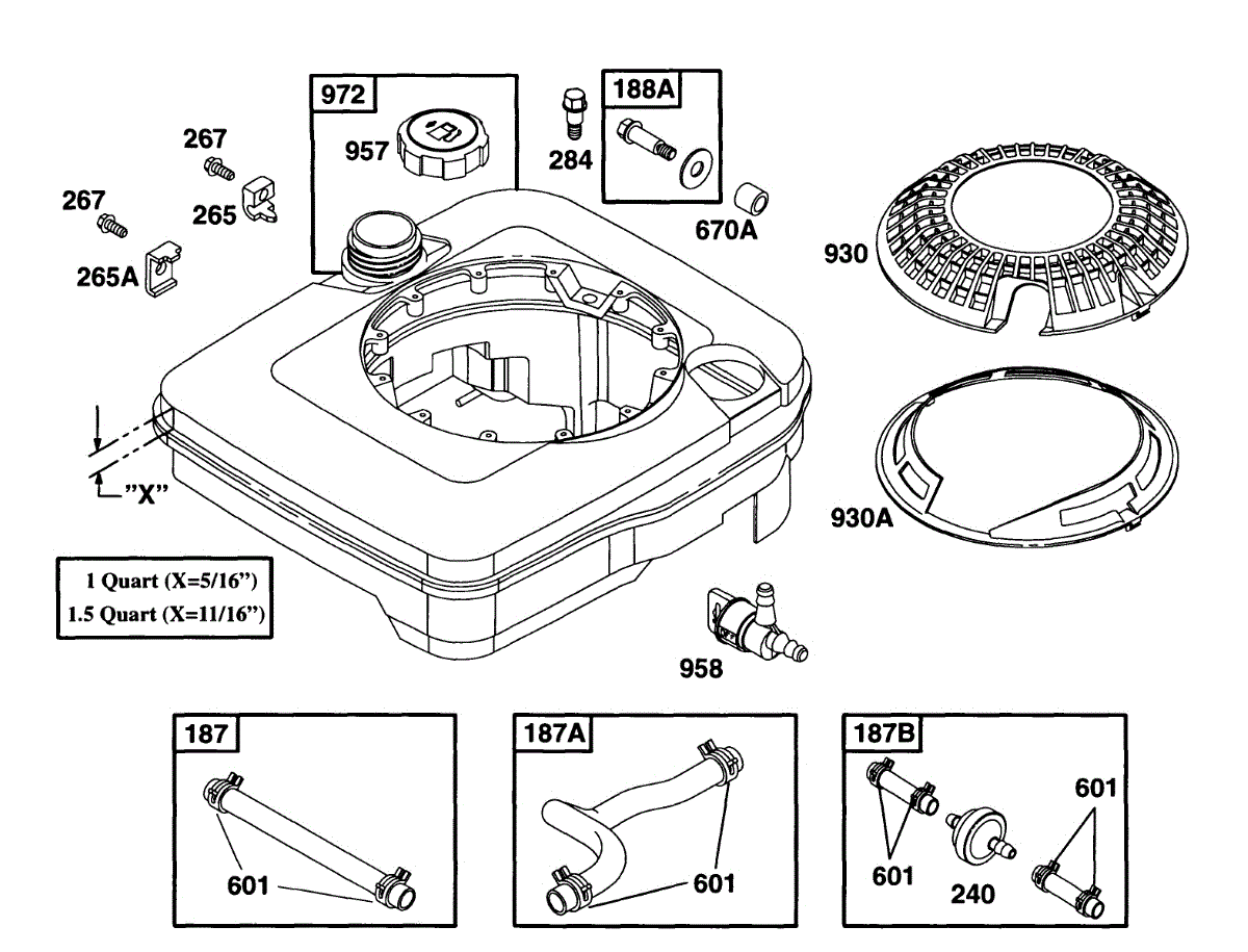 Parts for Briggs & Stratton 12E787-0710-99: Fuel Tank Grp Parts