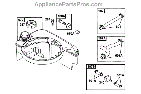 Parts for Briggs & Stratton 12E802-1135-03: Fuel Tank Grp Parts
