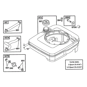 Parts for Briggs & Stratton 12S707-0651-01: Fuel Tank Grp Parts